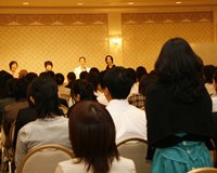 なるほど! その意味を体感できるワークに、参加者は納得の様子。「まずはきちんとした体でないと、笑顔もつくれない。笑顔がつくれないと、いい声も出せない」ということがよくわかりました。