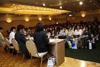 学びたい! という意欲のエネルギーが満ちた会場。進行役の江端さんも緊張? かと思いきや、「この分科会を選んだ方たちは、『キャリアづくりの最初の10年』は卒業してしまって、ここに来ざるを得なかったということでしょう」――江端さんのしゃれた挨拶で、会場には笑いが起こりました。場が一気にリラックスしたところで、早速本題へ。「部下との良い関係を保つ秘訣は何か、というところからディスカッションをはじめましょう」江端さんのナビゲートで幕開けです。