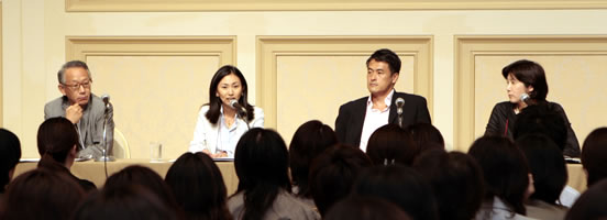立場の異なる三人の経営者が、東京大学特任助教授の江端貴子さんをファシリテーターに、それぞれの経験を通して得た具体的なアドバイスや今後の目標などについて、情熱を持って、参加者に語ってくださいました。