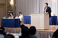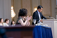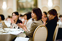 「国際女性ビジネス会議」の参加者の多くは、ビジネスウーマンたち。さらに約2割は経営者。経営者の視点で、目指すべきゴールを明確に示し、そのために必要である具体的な対策を話される玉塚さんの講演に、会場は鳴り止まない拍手に包まれました。