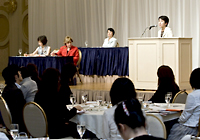 注目を浴びたアル・ゴア氏著の『不都合な真実』の翻訳については、依頼を受けたときに、通常、あのくらいの厚さであれば、翻訳に2〜3ヶ月かかるところを「25日です」と言われたこと。そして、それでも受け入れ、完成させたことを紹介。また、来日したアル・ゴア氏との出会いでは、「副大統領のときより、今の方がいい」と感じたことなどを加え、何千人もの講演者の通訳をしながら知った「優れたコミュニケータには、3つの原則がある」という分析を披露しながら、「アル・ゴア氏は、その3つがそろっている」と続けました。