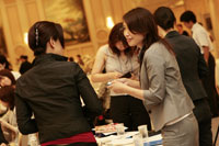 この分科会では、正しい立ち方や、ストレスを軽減するマッサージなどを参加者全員で実際にやってみて、大変充実した時間を過ごせました。特に印象に残ったことは、内からと外からのケアで美と元気を保つべし、ということです。運動やスキンケアなど外からのケアだけでも、サプリメントや食生活という内からのケアだけでもなく、その両方が合わせられてこそ、ストレスから解放され、健やかで美しくいられるんだとはっきり認識できました。外からのケアとしては、正しい姿勢を意識することと、二人一組で行うマッサージ法を学びました。そして内からのケアに関しては、お水をたくさん飲むことや、食事で補いきれない栄養素はサプリメントから摂取する方法もあるということ、その際、腸に老廃物がたまっていたらせっかくの栄養素を吸収できないので、便秘の改善も大切であると学びました。