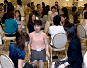 日本語があまり話せない方、男性、妊娠中の人……誰もが、終始笑顔で心から楽しん参加していました。 「いろいろな感情を経験することが大切であること」や、「とことん怒ったり、笑ったり、自分と仲良くなること」など、 ステキなアドバイスもあり、「コミュニケートする」とはどういうことかを身体で感じることができ、聞くこと、気持ちを伝えることの大切さを再認識できた分科会でした。
