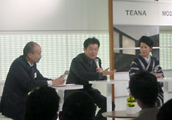 ゲストの建築家の大江匠さん、コーセーコスメポート(株)のクリエイティブディレクターの山田博子さんのコメントも絶妙でした。 山田さんは「ティアナ」のデザイン開発の外部アドバイザーとして、新車開発にもかかわられたようで、コンセプトの一つが「Japanese Modern」であることを意識されてのことなのか、優雅な和服姿で登場なさいました。ビジネススーツ姿の男性が多い中で、ショートヘアに縞の着物をキリッと着こなした姿は注目を集めていました。
