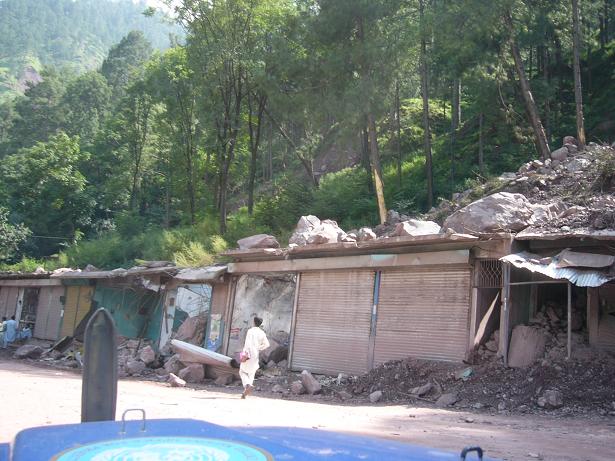 去年起こったパキスタン地震の被災地は、現在、緩んだ地盤が雨で崩れやすくなっています。ここは数日前に私が来た時は普通の商店街だった場所です。土砂崩れで不通だった道路が開通したので向かってみると、写真のような惨状になっていました。それでもそこに住む人たちがいます……。