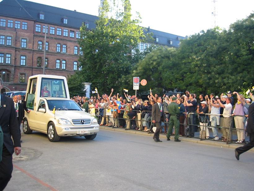 950年ぶりのドイツ出身のローマ教皇。大歓声の中、PapaMobile[パパ・モビール]と呼ばれるベンツの特別仕様車で、にこやかに手を振られていました。