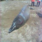 石川県松任市で2003年3月に撮影したクジラの漂着です。私はクジラが打ち上げられているのを初めてみました。 このクジラは、発見された時にはすでに死んでいました。人間が出したプラスチックやビニールなどのゴミを食べて胃に詰まり、食べ物が食べられなくなっていたそうです。このクジラを見ながら環境について考えさせられました。