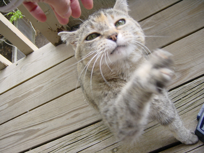 なでなでして欲しくて、手が見えると誰の手であろうと捕まえようとします。カメラを持つ手めがけて、エイッと捕まえようとしたモレナちゃん。