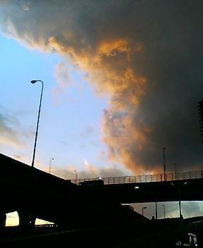 東京八十八景。第四景。午後5時の空。駅から降りて見えた、夕焼けと青い雲が入り混じった空。少しずつ日が延びてきた感じです。明日は晴れるかな?
