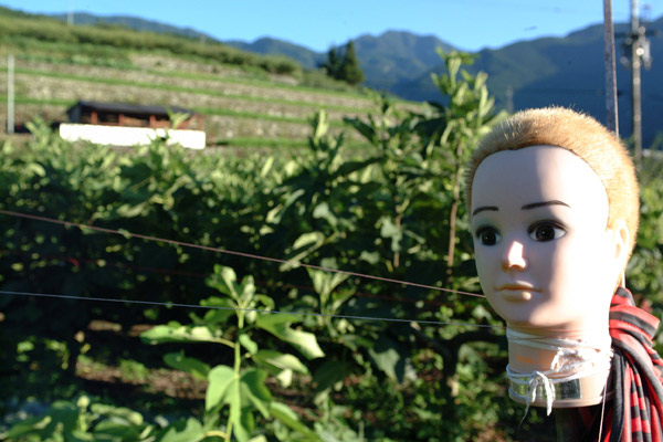 段々畑が連なる山道を上っていったら、こんなものが!この人形さんたちの前職はいったい何だったのでしょうか?? よく晴れた日でした。
