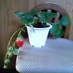 一人暮しの生活で生きている物とかかわりたくなって苺の鉢植えを買いました。水をあげたり、陽にあてたり、実が赤く生るのを待ち遠しくしています。日々のささやかな楽しみです。