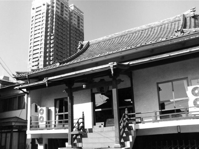 東京八十八景:第八景。東京都港区高輪の黄梅院入り口から少し入った所からの景色。寺院の裏にそびえ立つビル。これからもっと高層タワーが増えてゆくのかな。
