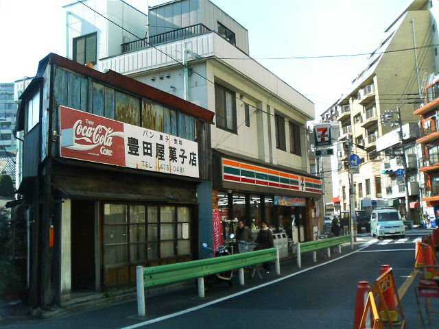 セブン・イレブンと昔ながらの駄菓子屋さんの組み合わせです。私の小学生時代はセブンイレブンに通った思い出があります、今も、ですが……。