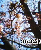 本日、仕事で行った先の小学校の正門側にあった「寒桜」です。一足先に春気分。