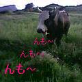与那国島の牛です。日中はそこら辺の草地につなげています。島中に牛がいます。