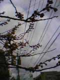 寒かった今日。曇空に桜のつぼみ。春はもうそこ。