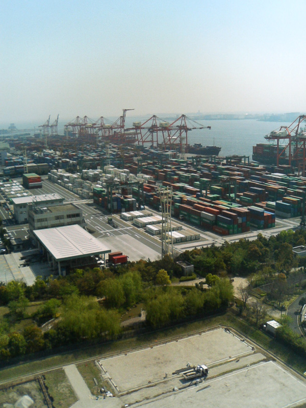 東京テレポートセンターからコンテナターミナル(お台場方面とは逆)を眺めて。港はいろいろな顔を持っているのだと感じます。