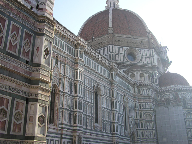 サンタマリアデルフィオーレ大聖堂前です。朝日に輝くサンタマリアデルフィオーレ大聖堂を見ながら、毎日学校に通っています。16世紀で時を止めたこの街に君臨するDuomoを見ながら、未来を向いている日本のよさを感じるこのごろです。