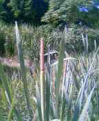 出雲神話の中で、ワニに皮をむかれた因幡(いなば)の白ウサギは、神さまの教えに従いガマの穂の上に寝転がって傷を癒します。写真はそのガマの穂。実際、花粉に止血成分があるそうです。