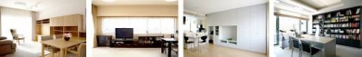 下の写真は、弊社の収納事例。壁面収納といっても、(天井までの)高さ、色、収納するもの、見せる・隠す収納など様々。部屋(壁)とのバランス、圧迫感の有無、色で部屋の雰囲気が異なりますのでご参考になればと思います。