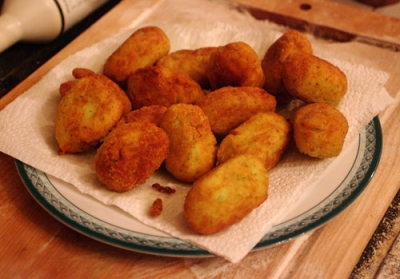 材料:じゃがいも4個、ズッキーニ1/2本、卵2個、小麦粉・パン粉(細かい)少々、オリーブオイル(揚げ油)・
