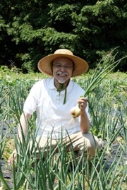 タマネギは、出荷するときはいっぺんに収穫して乾燥させますが、うちでは使うたびに1個、2個と引き抜きます。気温が高くなって腐りやすくなるまでは、そうやって食べると、切り口から白い汁が垂れる新タマネギ特有のおいしさが長く味わえます。