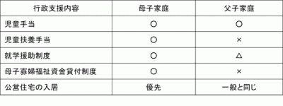 母子家庭、父子家庭の支援の体制については大きな違い