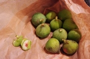 7)180度のオーブンで20分位焼く。あら熱が取れたら、小鍋に湯をわかし、水で戻した板ゼラチンを加え溶かし、イチジクを覆うようにまんべんなく塗りつける。冷蔵庫で保存する。夢のように美味しい出来上がり!