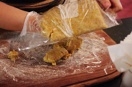 2)まとまった生地をビニール袋に入れ、冷凍庫に入れて30分くらい休ませる。