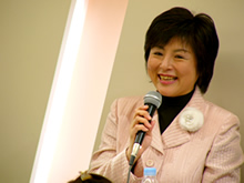 「初めてイー・ウーマンの講座に参加させて頂きましたが、勇気を出して 1 人で来て良かったです。始めあたりに立って皆さんの前で自己紹介もできて、緊張はしましたが、学ぶことの多い時間でした。先生のように聞きやすく、楽しくさせるような、すてきなお話し方ができるようになりたいです。」