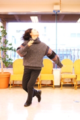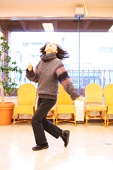 「ロール」は、一番簡単なのは、こうやったり、これが2個になると、こうで。今日はセーター着てきちゃって、首が出てないので回せないですけど(笑)。首で回したり、手で握らないものが「ロール」。