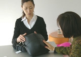 次に、立体裁断という手法です。ご覧のとおり、底のマチがないんですが、ちゃんと中身が入る。こういった形をつくるのには特殊な技能が必要ですが、それを使うことで、新しい形や使い方をつくり出すことができる、ということです。