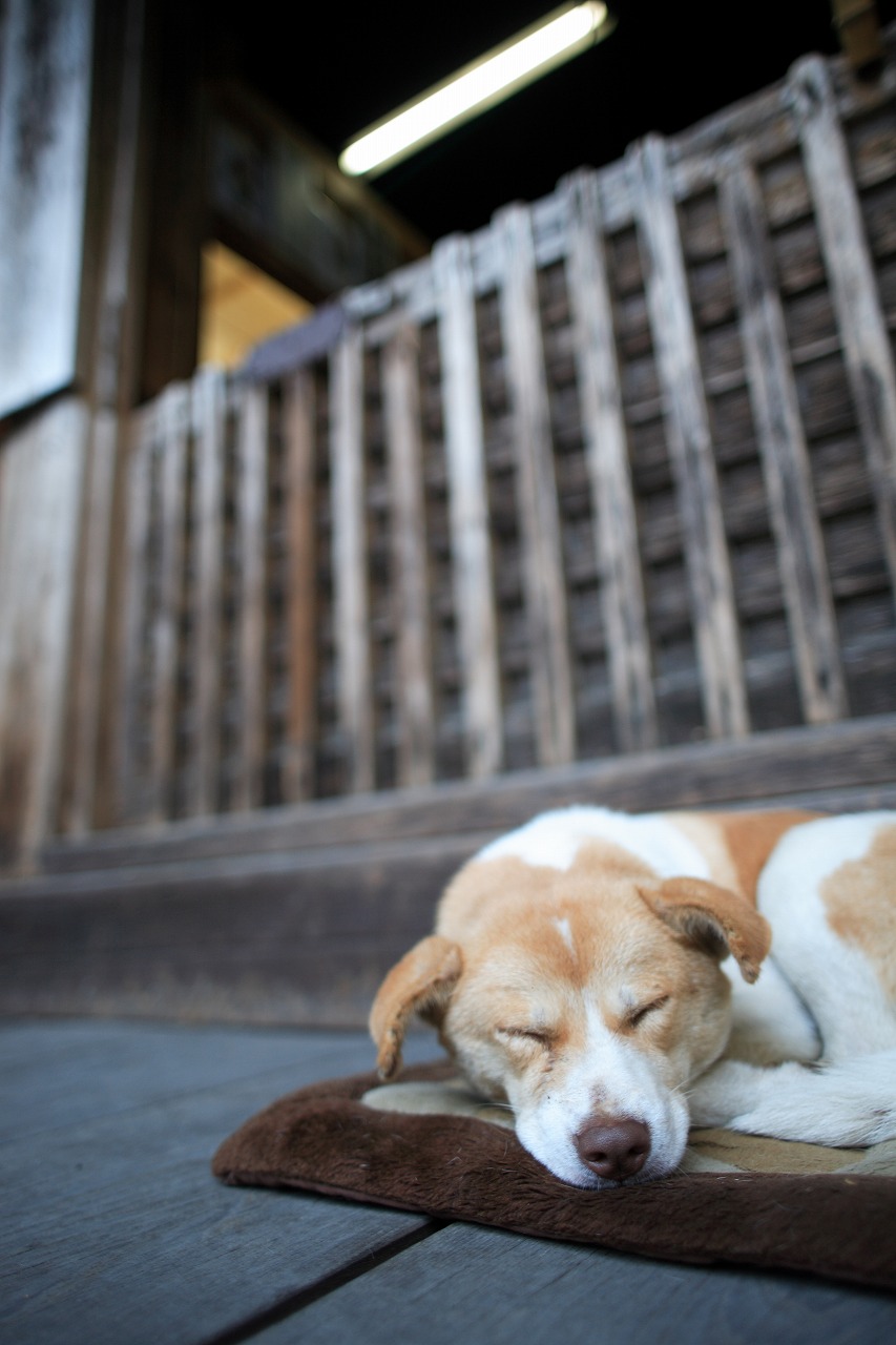滋賀県延暦寺四季講堂で修行(?)している犬です。修行僧達のお勤めの言葉に耳を傾けてのんびりとご飯までの時間を過ごす姿も堂々たるもの。カメラを向けても知らんぷりです。日本の犬は、こういう姿が似合うな……と再認識させてくれました。