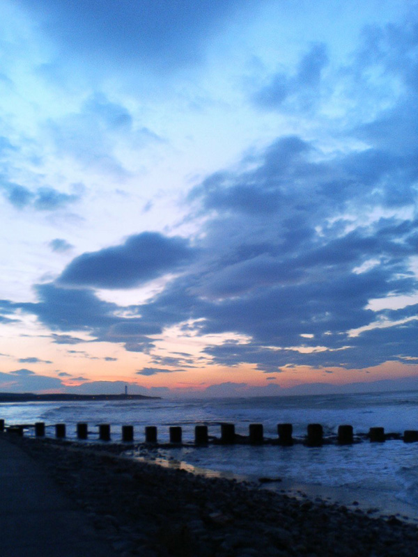 Scotland Elgin の夜の町でもう一枚。海岸の夕暮れ時の写真です。海外でも変わらない携帯電話のカメラ(※)の手軽さにも感動しました。