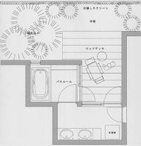 lovesnowさんの少し狭めのお庭でも、外からの視線を遮るしかけ(目隠しスクリーン等)をつくることによって、プライベートスペースを確保できる場合があります。図面は4畳弱のウッドデッキを設けることによって生活を楽しむための空間をつくりだした例です。