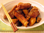 6年もの長きにわたり大地のパワーを吸い尽くし、体を温めるのはもちろんのこと、サポニン、アミノ酸をはじめ、ビタミンB群を含む高栄養食品です。私も血圧が低いため冷え症でしたが、高麗人参のおかげですこぶる元気、快調です。1日2gを目安に、粉末はそのまま食べるか、煮物、たれに溶かしてお召し上りください。今日ご紹介する料理は、「里芋とスペアリブのコチュジャン煮」です。コチジャンの唐辛子みそが体を温めてくれます。ほっこり味をお試しください。